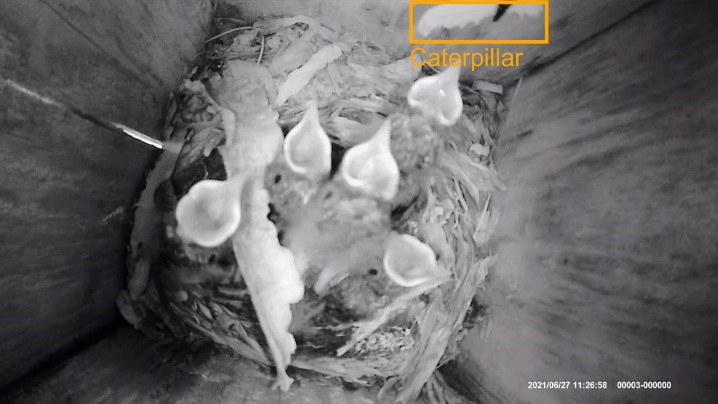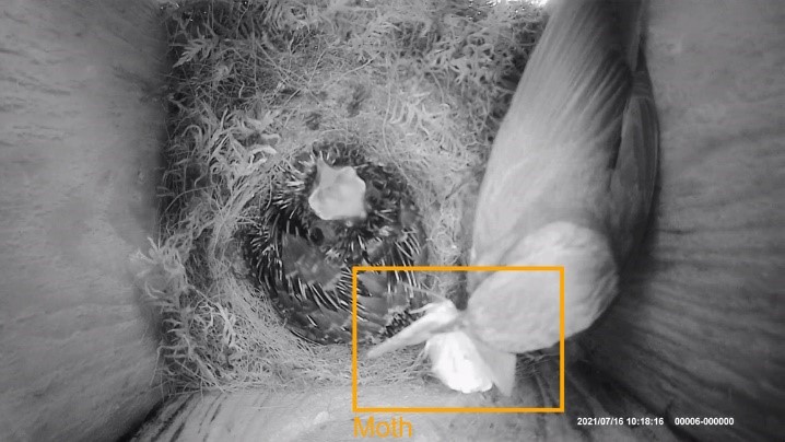 For my Bachelor graduation project I worked on the detection of birds and their prey in nestbox video footage using computer vision. To investigate biodiversity, researchers have installed cameras in nestboxes to monitor the behaviour of birds and their young. Often these cameras are set up to record for extended amounts of time. The longer these recordings become the more time-consuming it becomes to filter and annotate the data.